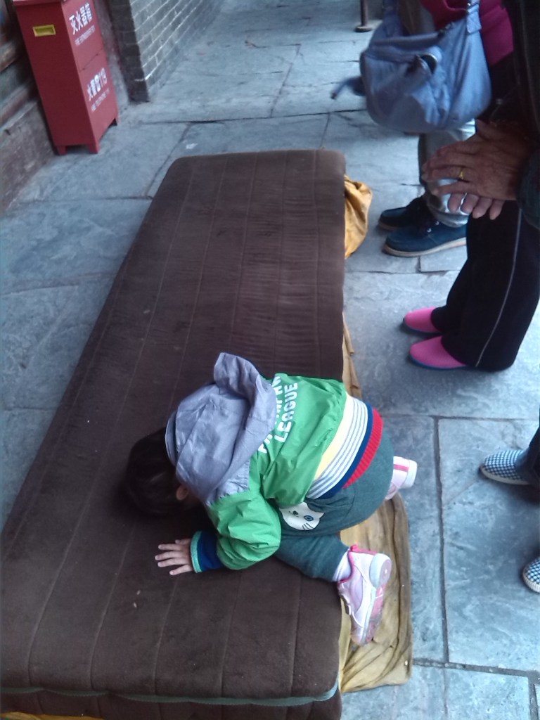 2013年,我第一次帶弟弟(那年他3歲)上五台山,到達後第一件事就是到菩薩頂去見 上師,當時有位居士在殿裏打坐,弟弟見到 上師一下就跪墊叩拜,連拜三下,居士看了竟然哭了,後來回程車上又跟他坐同一班車,他說:我活了大半輩子才見到 上師,小朋友才3歲就見到 上師,而且如理跪拜,福報太大了!!太感動所以哭了。