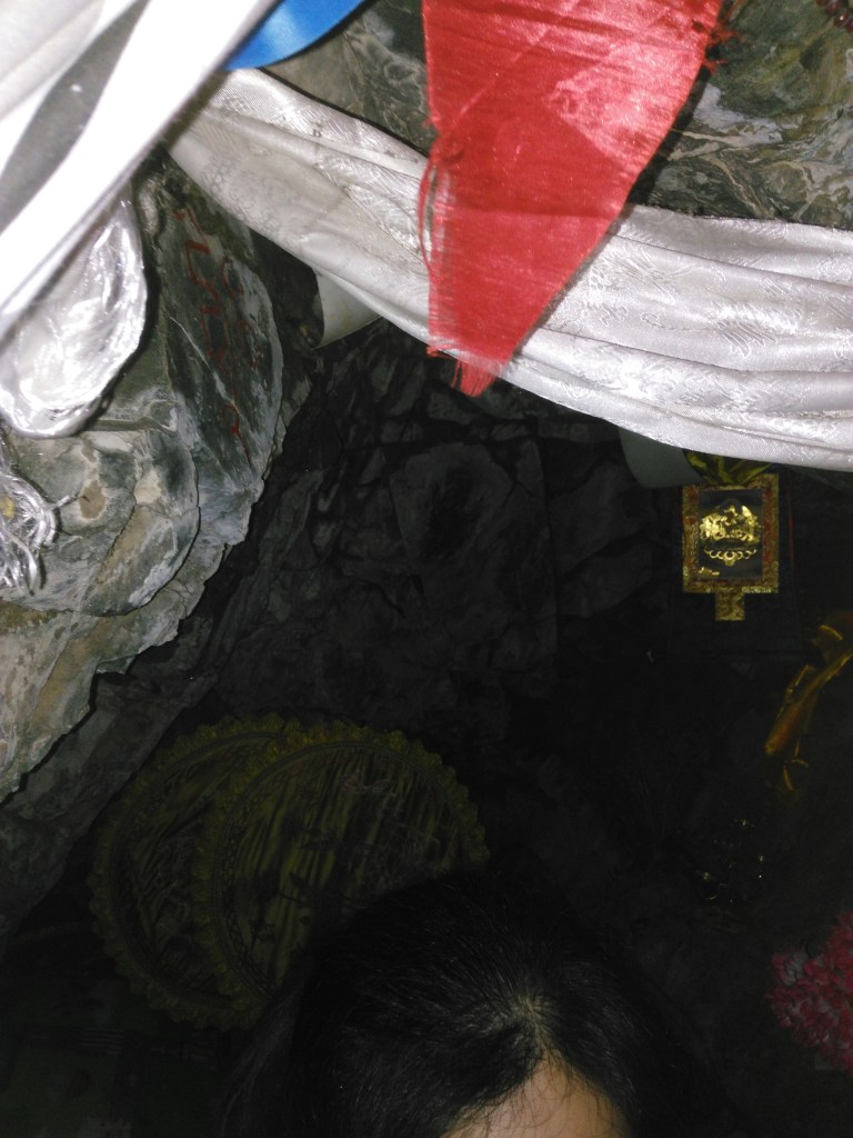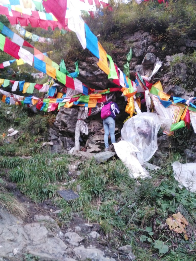 2015年9月底我與道友們上五台山,徒步走到文殊洞,抵達時已經將近18點,原打算參拜完就往回程走,突然遇到一位老太太,一手拿著柴刀,一手拿個塑膠袋裡面裝了一隻死掉的麻雀,見面就說:你們那麼遠來,這山上有個釋迦牟尼佛修行的山洞,洞里有修行成就后留在石壁上的手印,怎麼不上去看看?我昨天剛上去,這兩天下雨,山壁滑,我走了快兩小時才到,你們應該上去,我要去埋這隻麻雀…一看就覺得是文殊菩薩,都這樣講了,應該依教奉行,於是翻過寺院的屋頂,向山上進發。